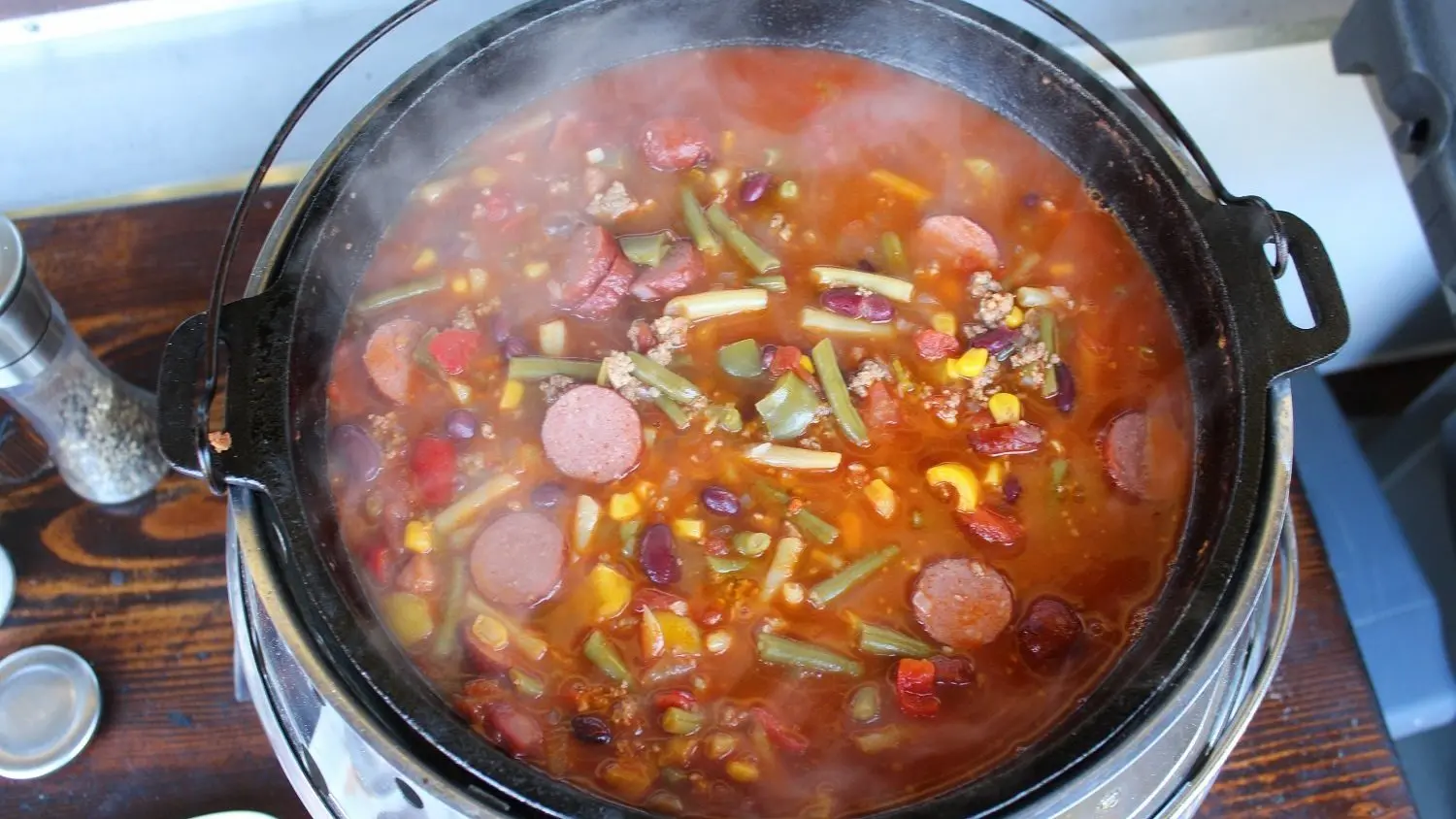 Nein, man muss sich nicht strikt an die Zutatenliste im Rezept unterhalb halten. Wer keine weißen Bohnen mag, der nimmt nur grüne. Oder eben auch anders herum. Wem keine Cabanossi schmeckt, der schnappt sich eine Chorizo. Gleiches gilt fürs Hackfleisch. Hier findet gemischtes Hack seinen Weg in den Topf - wer Schweinefleisch jedoch vermeiden möchte kauft nur Rinderhack ein.