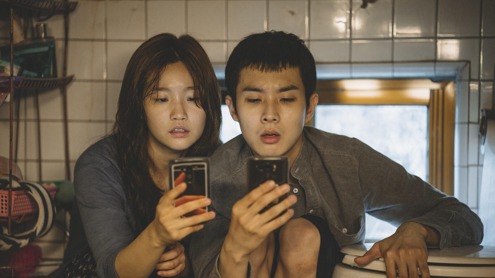 Für WLAN-Empfang kriechen Ki-jung (Park So Dam) und ihr Bruder Ki-woo (Choi Woo Shik) in das Nischenklo der Wohnung.