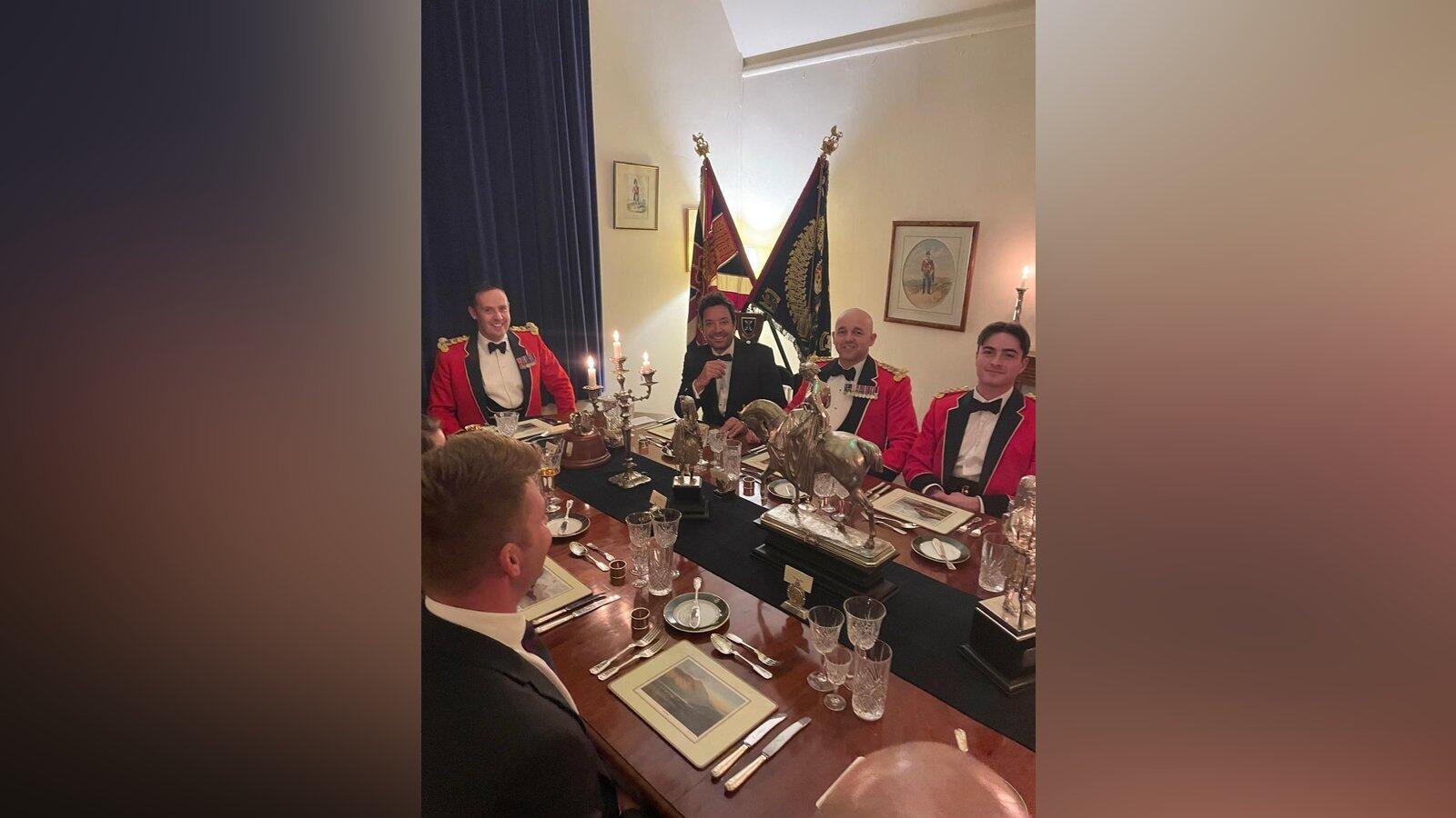 Ob dem Starmoderator die Delikatessen wohl geschmeckt haben? Während seines Urlaubs in Schottland ist US-Moderator Jimmy Fallon (51) von schottischen Soldaten spontan zu einem besonderen Abendessen eingeladen worden - mitsamt Dudelsackmusik und Kilt.