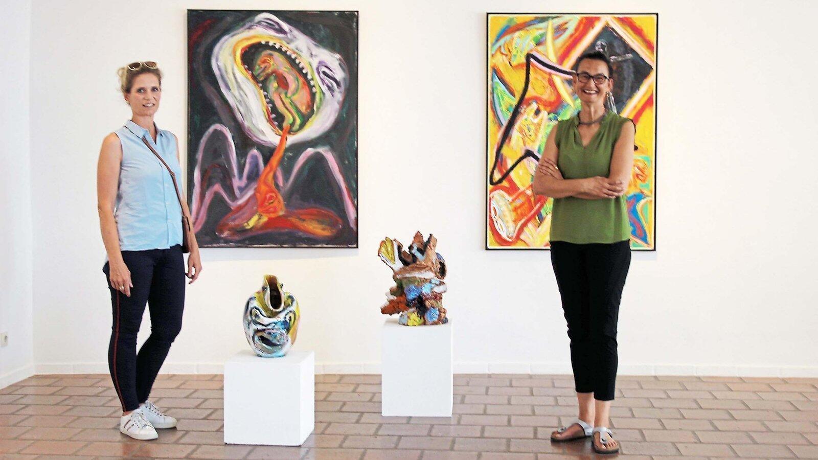 Viel Herzblut hat Anjalie Chaubal (rechts) zusammen mit Simone Seifert in die Ausstellung gesteckt. Zu sehen sind unter anderem auch vier Werke von Künstler Franz Hitzler.