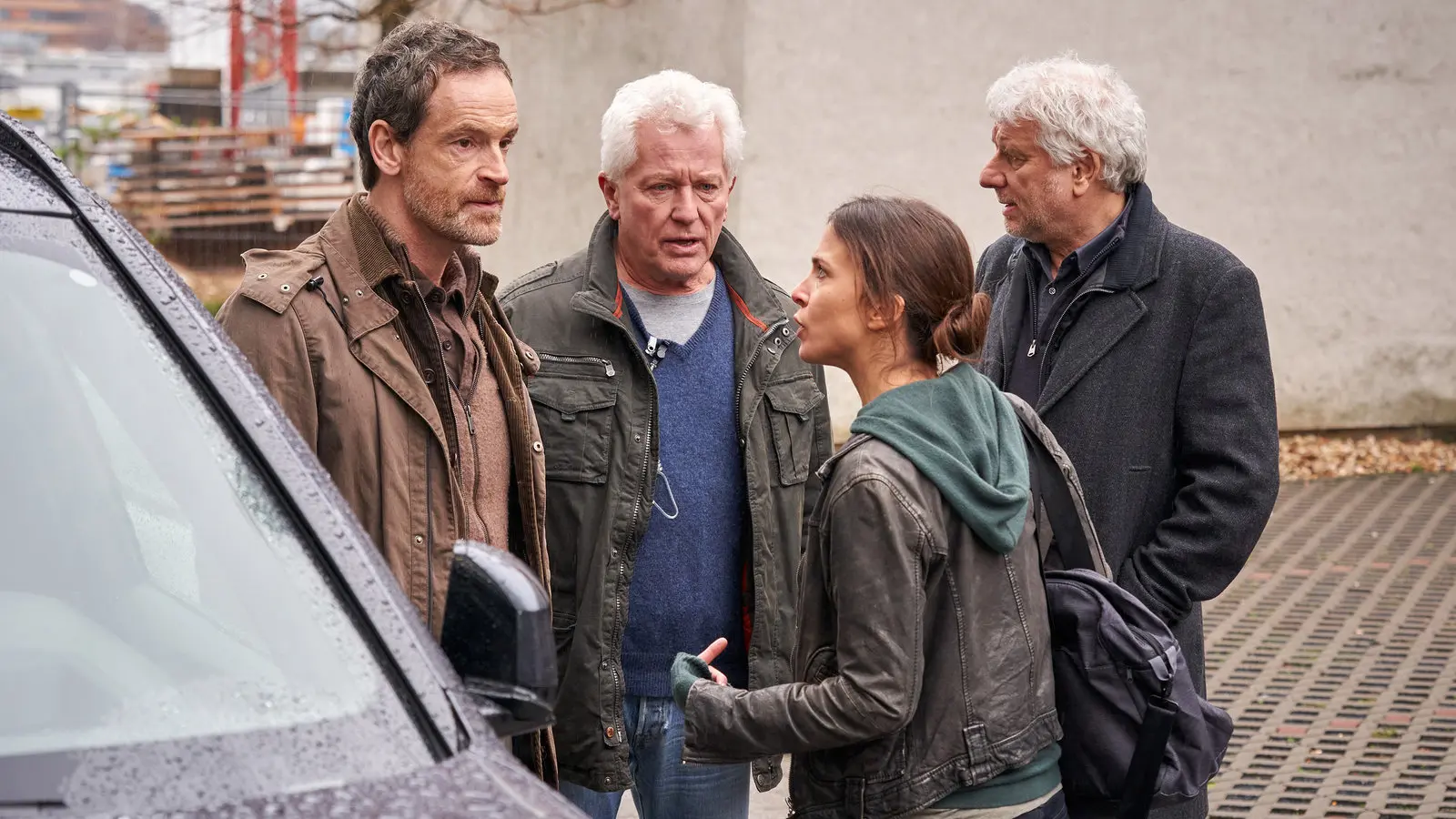 Es kracht mal wieder in Dortmund - wie so oft, wenn Peter Faber (Jörg Hartmann, links) involviert ist. Nora Dalay (Aylin Tezel) fühlt sich für die Frau eines Gangsters verantwortlich. Die Münchner Kollegen Ivo Batic (Miroslav Nemec, Zweiter von links) und Franz Leitmayr (Udo Wachtveitl) dürfen in diesem Film die abgeklärten Profis aus München spielen.