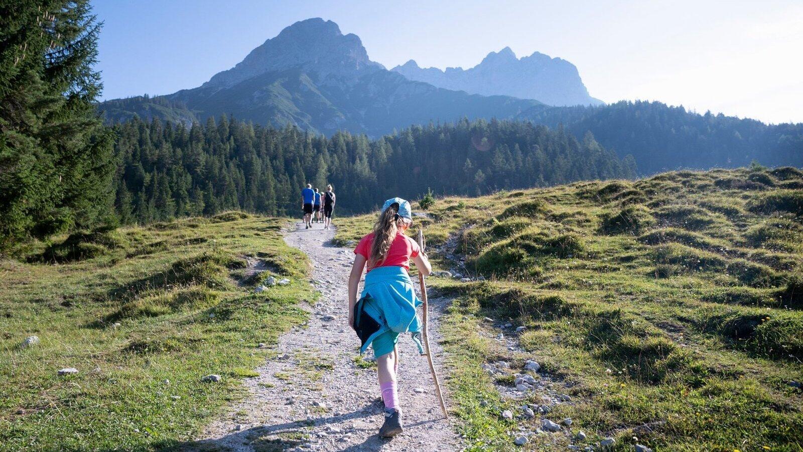 - Kindergartenkinder (3 bis 6 Jahre): Länger als drei bis vier Stunden sollte die Gehzeit nicht betragen. Wählen Sie schattige, ungefährliche Wege - lieber saftige Wiesen als Touren mit Abgründen.