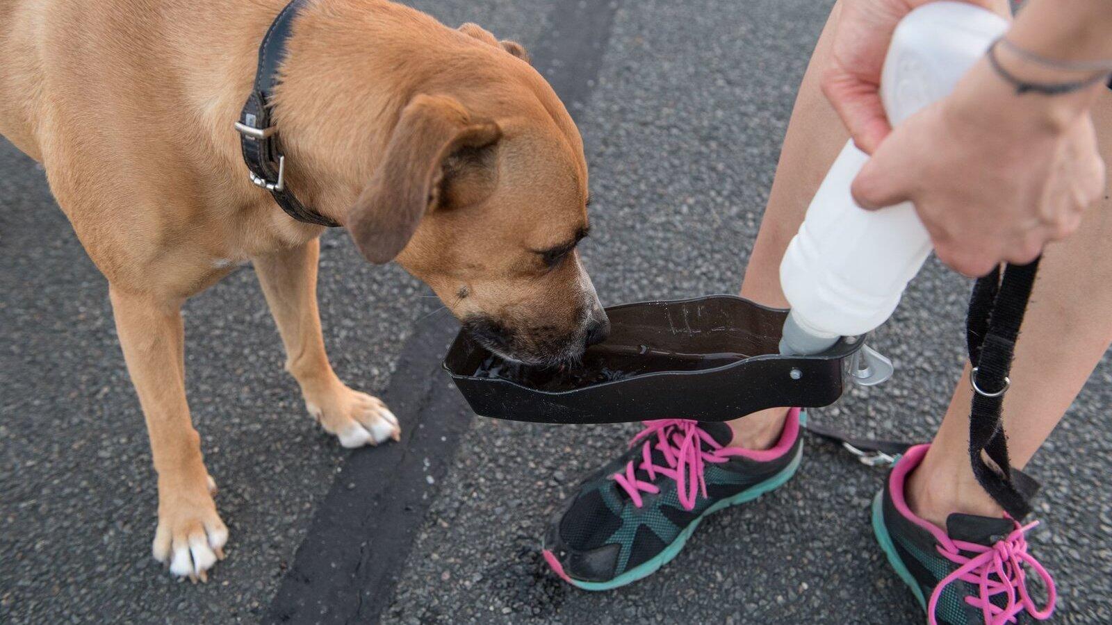 Wenn in der Umgebung kein Wasser vorhanden ist, könne man es aus der eigenen Trinkflasche in eine Handkuhle schütten, um seinen vierbeinigen Gefährten zu versorgen.