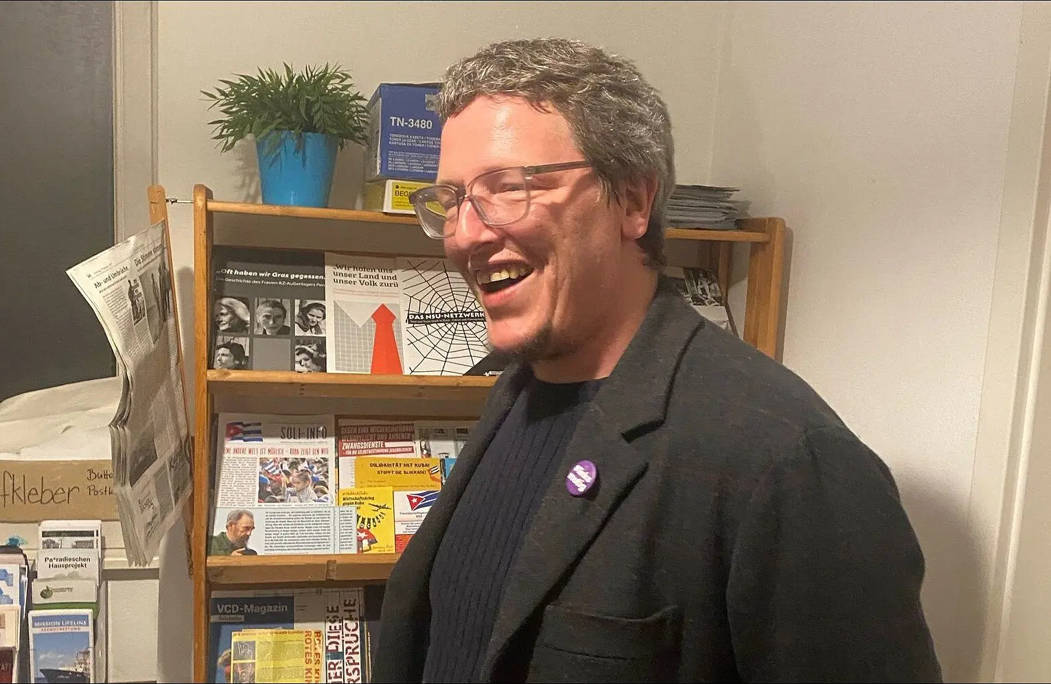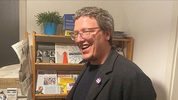 Linke/mut-Stadtrat Falk Bräcklein ist auf der Wahlparty der Linken eingetroffen. Er kommt gerade aus dem Rathaus. „Ich bin mir ziemlich sicher, hier ist die Stimmung deutlich besser.“