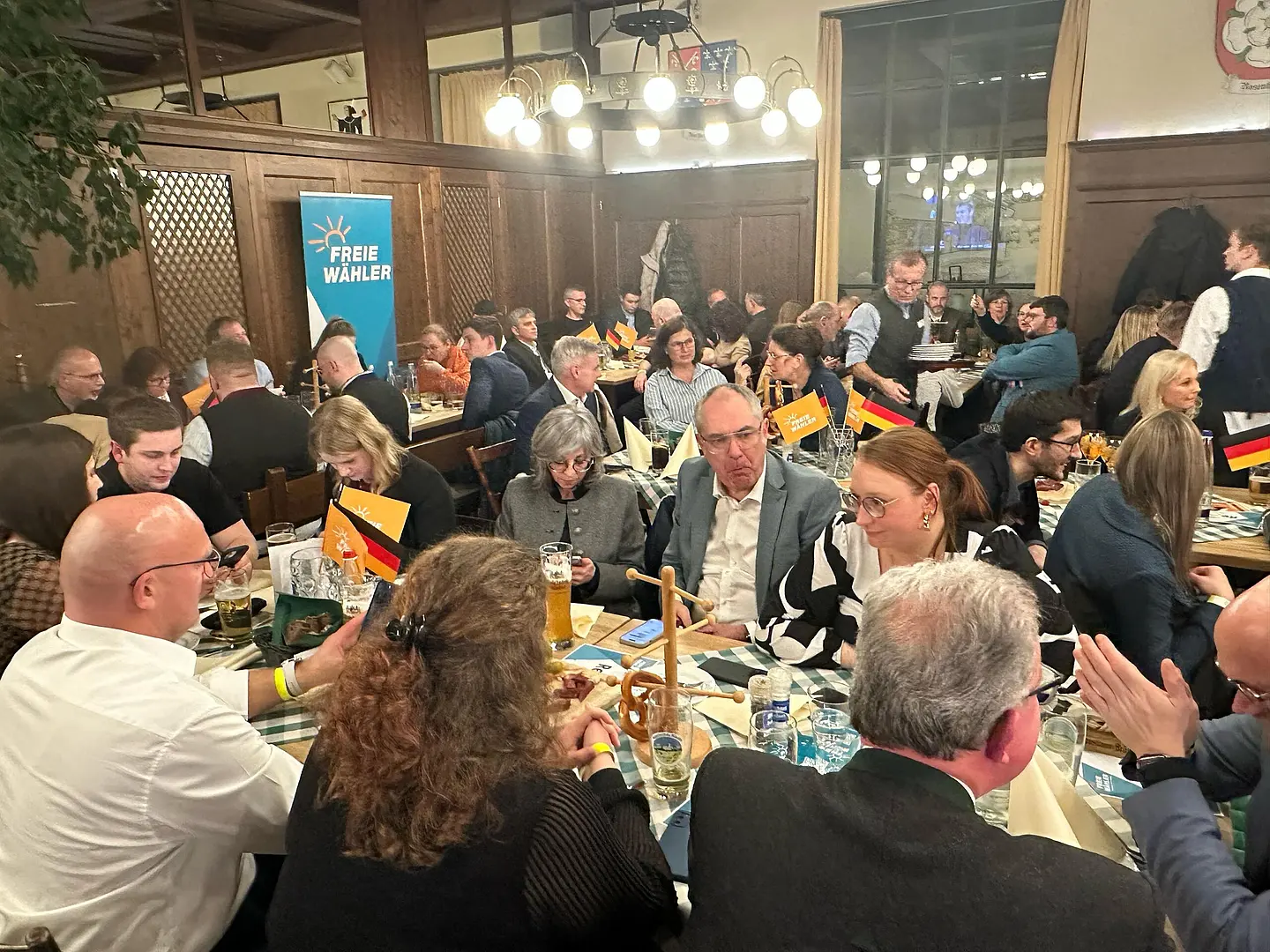 Peter Dreier ist im Wirtshaus am Bavariapark in München angekommen. Dort kommen Kandidaten und Unterstützer aus ganz Bayern zusammen. Aktuell etwa 120 Gäste. Die ersten Auszählungsergebnisse kamen aus der Stadt und da lag Florian Oßner vorne. Doch es fehlt noch der Landkreis, gibt sich Dreier weiter zuversichtlich . „Erschrocken bin ich über das aktuelle Ergebnis der AfD-Kandidatin“ so Dreier.