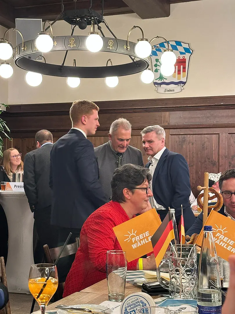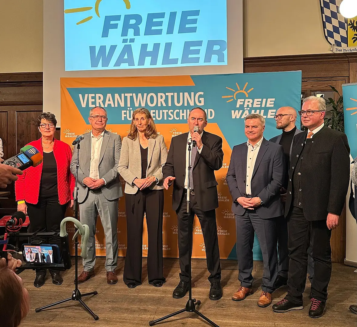 Als Hubert Aiwanger bei der Wahlparty der Freien Wähler eintrifft macht er seinen Mitstreitern Mut: Auch wenn die Direktmandate nicht errungen werden konnten, so hätten alle einen tollen Wahlkampf abgeliefert. Man werde nun in Bayern weiter gute Arbeit leisten. Irgendwann werde auch in Berlin die Zeit reif sein, für die Freien Wähler.