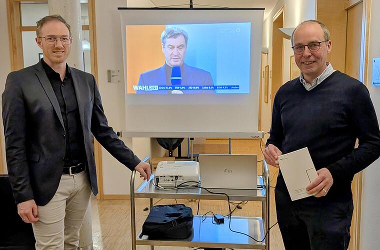 Wahlleiter Josef Niedermeier und Bürgermeister Martin Hiergeist - in Pilsting ist die Auszählung bereits abgeschlossen.