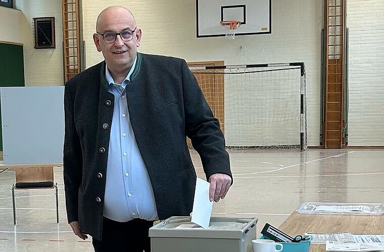 Stephan Protschka (AfD) - hier beim Wählen in Mamming - hat in der Stadt Dingolfing 120 Stimmen mehr bekommen als Günter Baumgartner. Der AfD-Mann lag mit 31,4 Prozent  vorm CSUler mit 31,3 Prozent der Stimmen.
