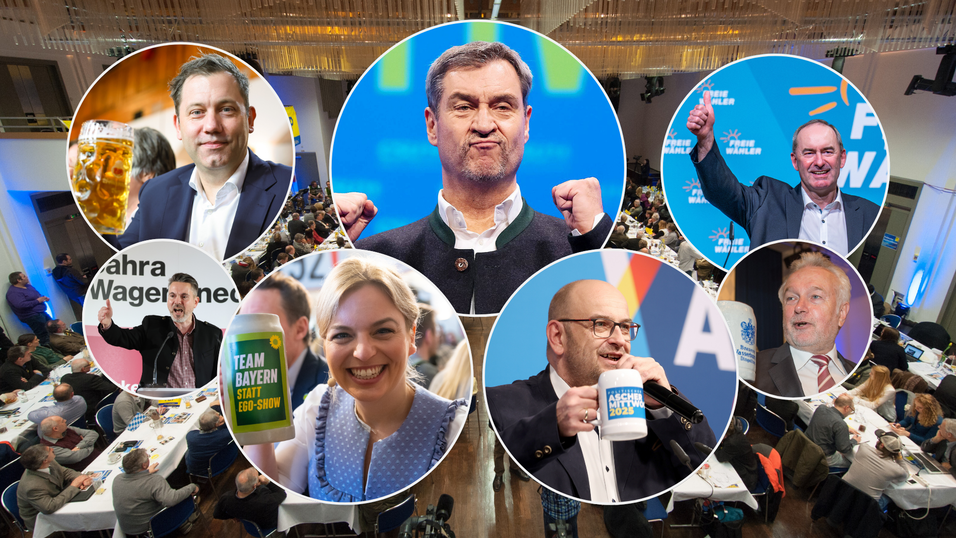 Lars Klingbeil, Markus Söder, Hubert Aiwanger, Fabio De Masi, Katharina Schulze, Stephan Protschka und Wolfgang Kubicki werden für ihre jeweiligen Parteien auf der Bühne stehen.