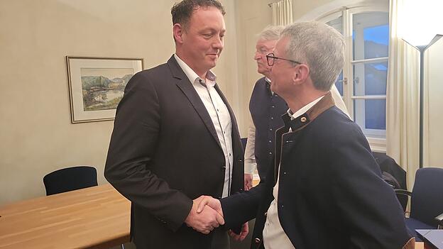 Landrat Bernd Sibler ist der erste Gratulant vom neuen Bürgermeister in Winzer, Karl-Heinz Baumgärtler von der UW.