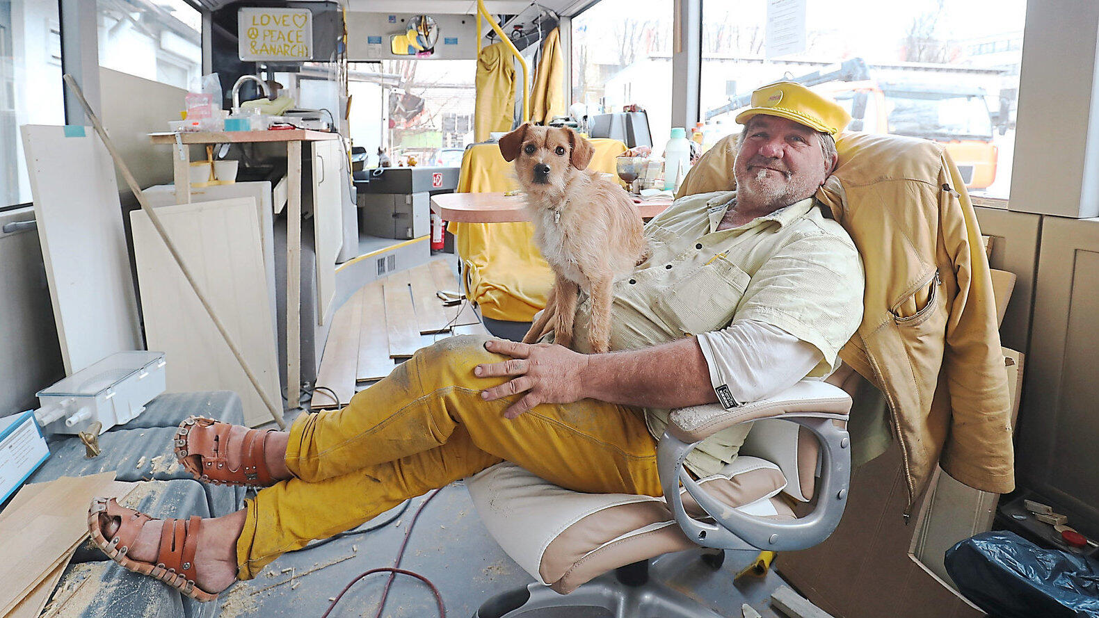 Mirko Schaal, bekannt als der "gelbe Mann", will auch seinen Hund Samy mitnehmen auf seine Reise in die Welt.