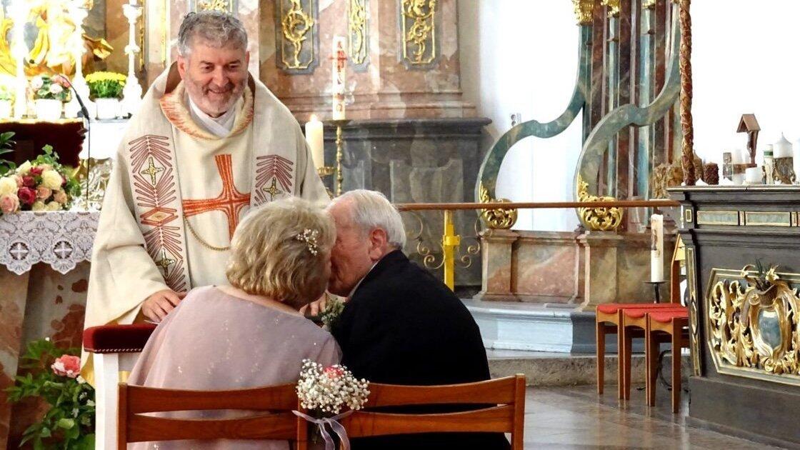 In der Wallfahrtskirche in Sossau hat Pfarrer Johannes Hofmann das Paar nach 60 Jahren Ehe getraut - auch für ihn eine Premiere.