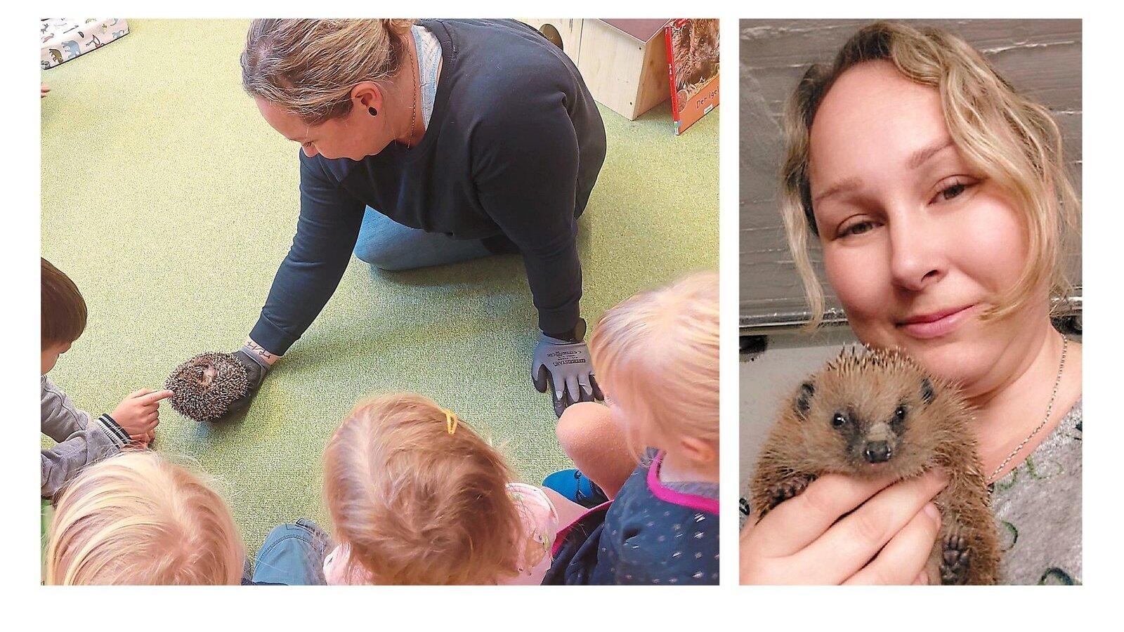 Auch Schulen und Kindergärten besucht "Igelmama" Maria Hain mit ihren Pfleglingen, um für Verständnis für die Gartenbewohner zu werben. Rechts: Maria Hain mit einem ihrer stacheligen Schützlinge.