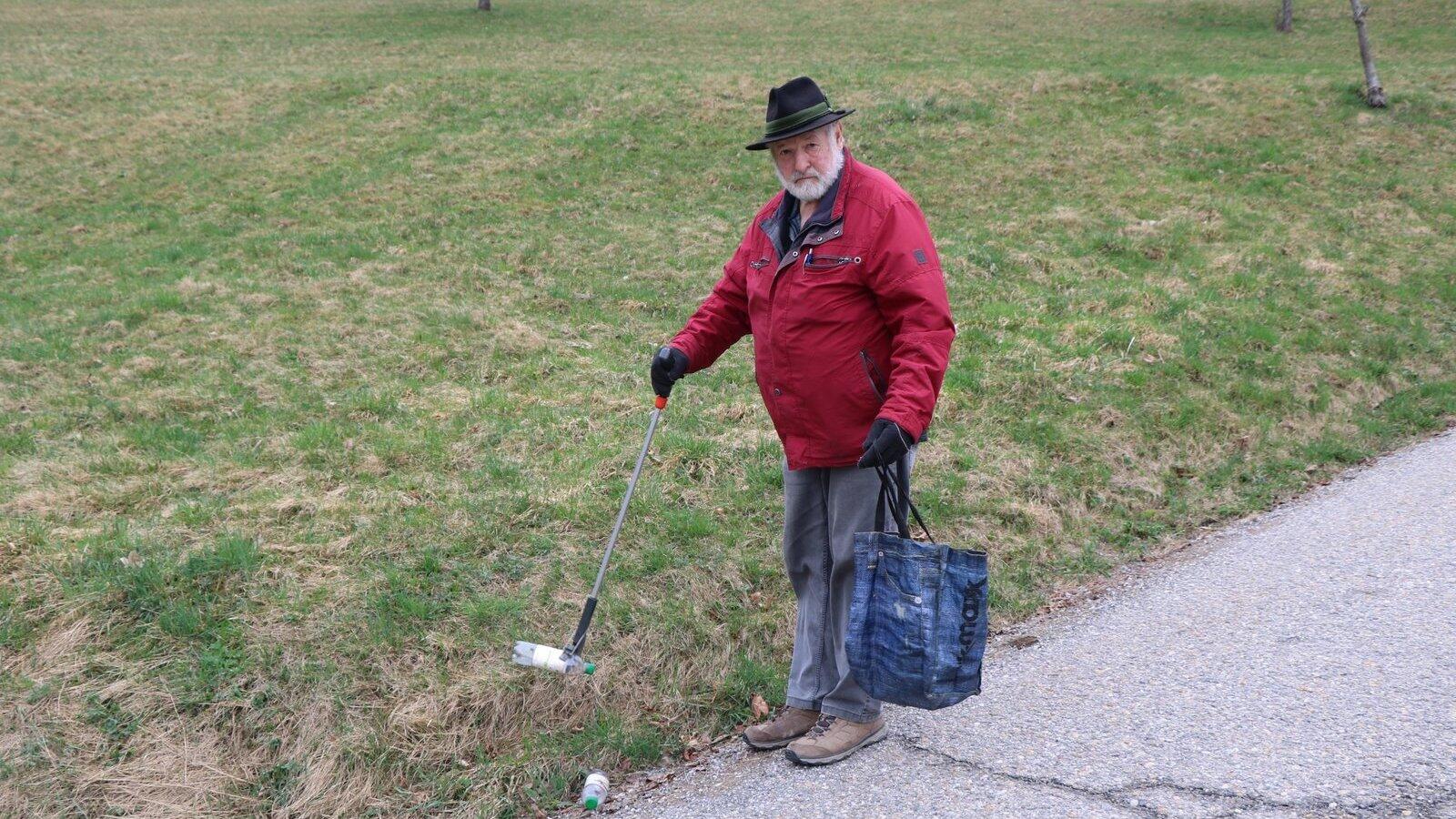 Er möchte, dass unsere Natur sauber bleibt. Siegfried Kandler sammelt seit Jahren ehrenamtlich den in der Natur herumliegenden Müll ein.