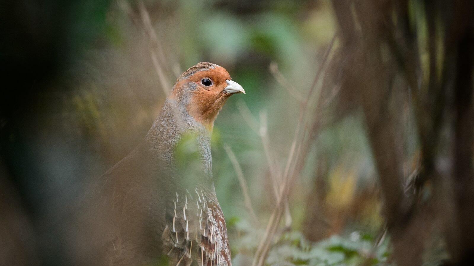 Ein Rebhuhn sitzt in einem Gehege des Zoologischen Gartens Wilhelma. Der Bestand an Rebhühnern in Deutschland hat sich laut einer Erfassung des Deutschen Jagdverbands (DJV) etwas stabilisiert.