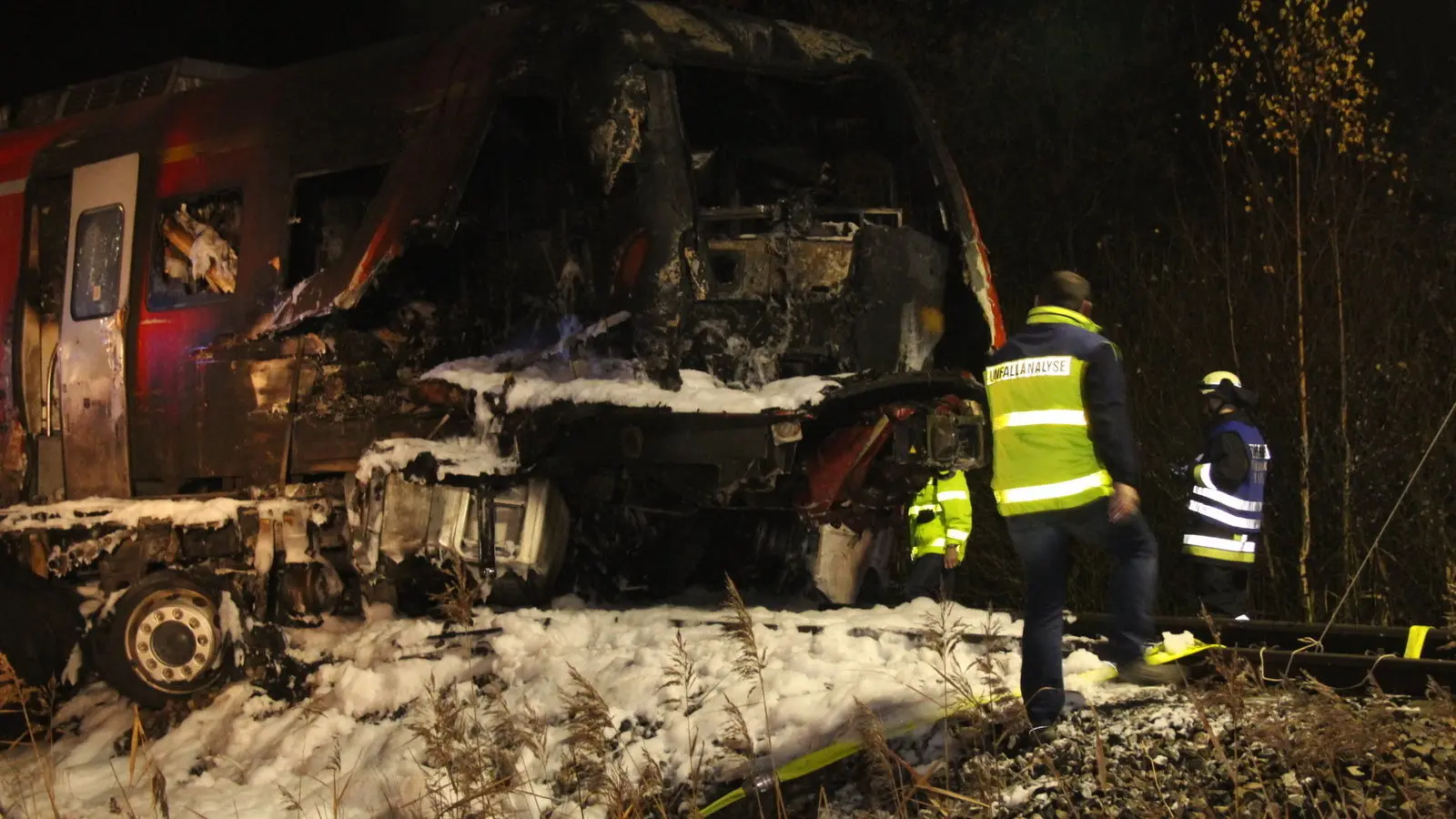 Der Lkw-Beifahrer wurde nur leicht verletzt und wurde noch am frühen Morgen zum Hergang befragt. Die Polizei geht davon aus, dass von den etwa 40 Zugpassagieren niemand mehr unter den Trümmern liegt. Zuvor war ein Sprecher von etwa 50 Fahrgästen ausgegangen. Ein genauer Überblick war wegen der unübersichtlichen Lage zunächst schwierig.