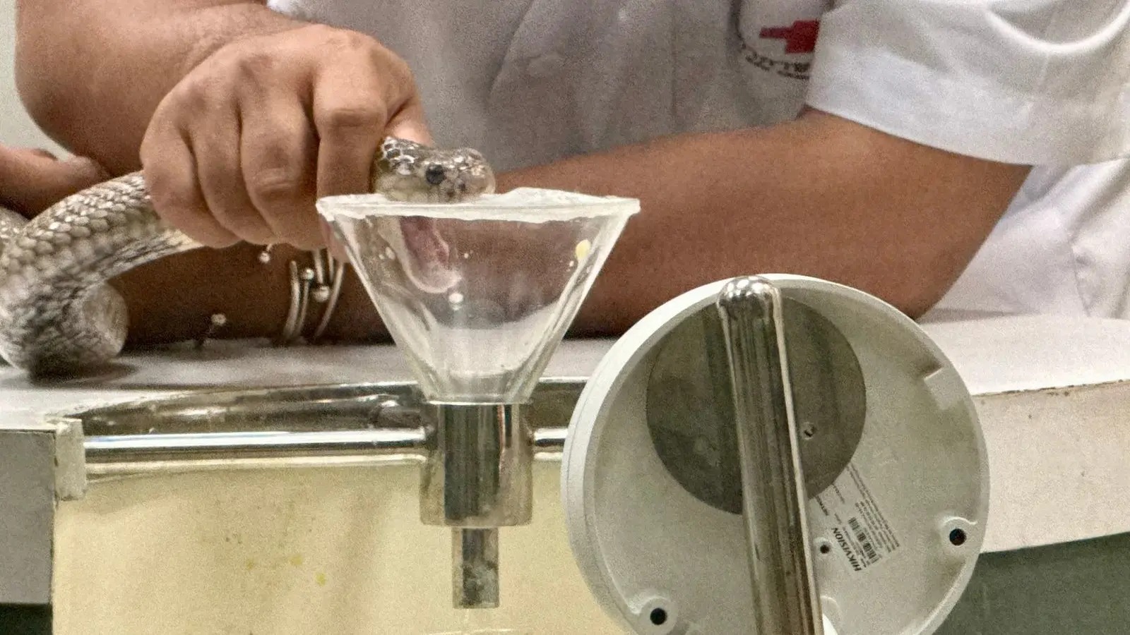 „Jeder Tropfen Gift, den wir heute von den Monokelkobras extrahieren, wird an die Abteilung für die Herstellung von Antivenom geschickt“, erklärt derweil ein Experte den Zuschauern aus aller Welt, die dem Schlangen-Melken beiwohnen. Dann würden Pferden über einen längeren Zeitraum geringe Mengen des Toxins injiziert, bis das Immunsystem der robusten Tiere genügend Antikörper gebildet habe.
