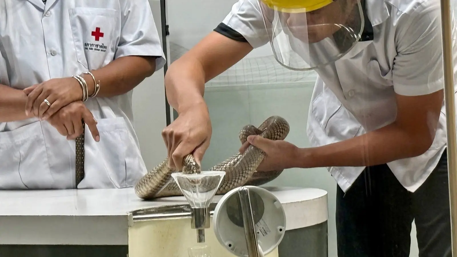 Für schwache Nerven ist diese Arbeit nichts. Aber sie kann viele Leben retten, gerade in Südostasien, wo jährlich Hunderttausende Menschen von Schlangen gebissen werden und Studien zufolge mehr als 15.000 Opfer an den Folgen sterben. Fast 1.000 weiteren müssen jedes Jahr Gliedmaßen amputiert werden.