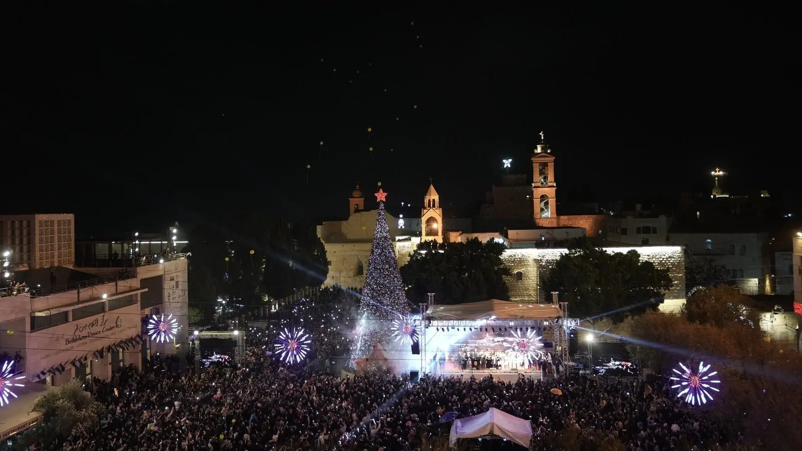 Beim wohl größten Weihnachtssymbol der Welt handelt es sich um eine monumentale Installation in Form eines Tannenbaums im mittelitalienischen Gubbio. Das 750 Meter hohe und 450 Meter breite Gebilde am Hang des Monte Ingino erstrahlt ab 7. Dezember 2025. Hunderte bunte Leuchtpunkte und Kilometer an Verkabelung sorgen für ein weit sichtbares Farbenspiel.