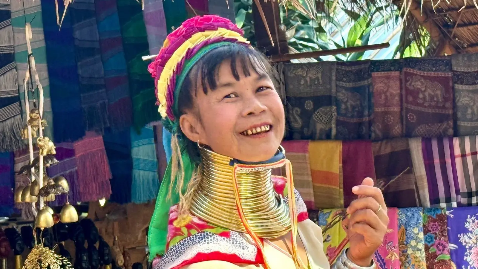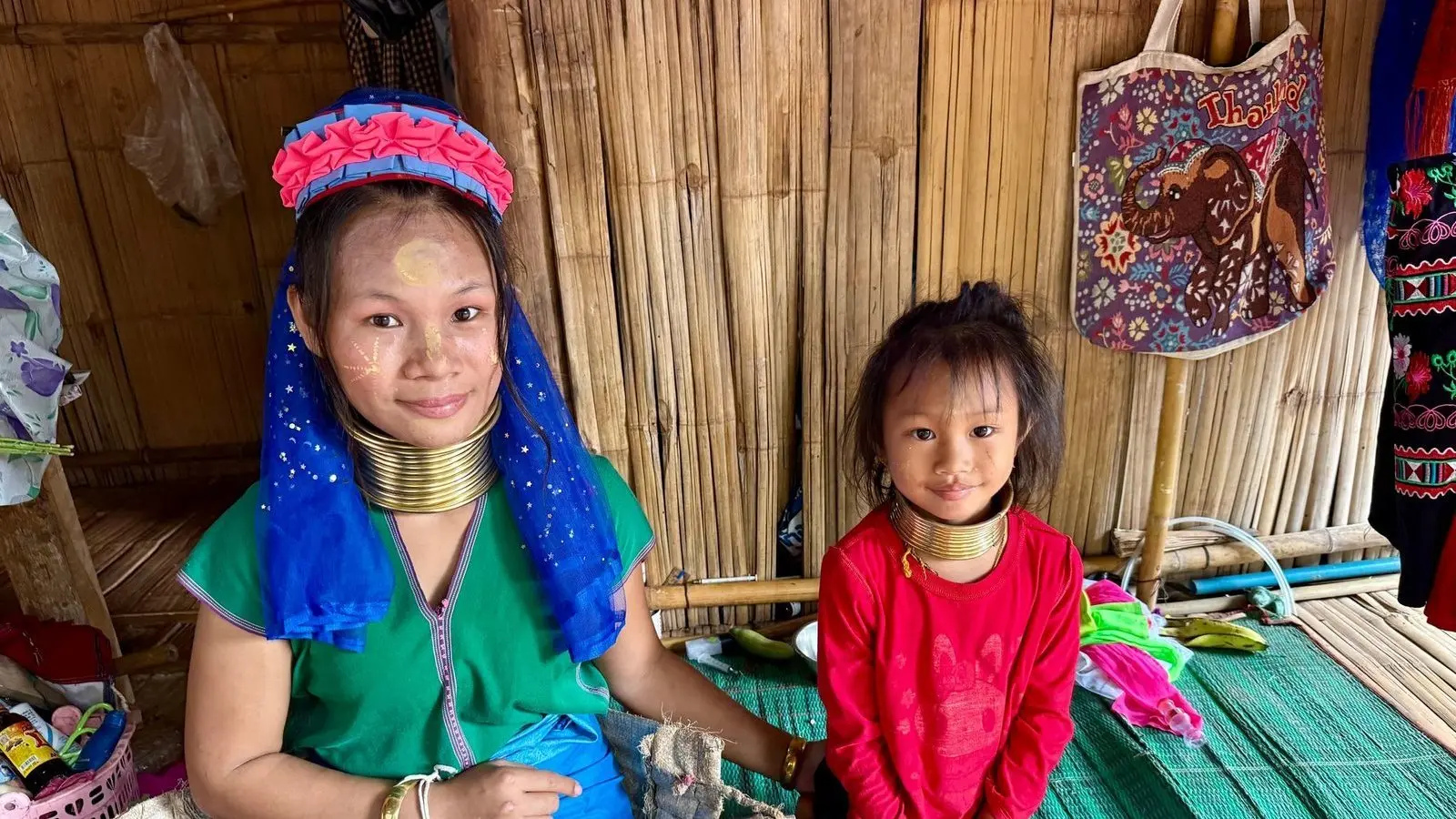 Am Rand der Berge nördlich von Chiang Rai sitzen Frauen vor ihren Hütten und weben flink bunte Schals. An einer Bambusstange wehen die fertigen Handarbeiten im Wind. Sie dienen als eine Art „Tauschgeschäft“: Touristen kaufen die Souvenirs und dürfen im Gegenzug Fotos von den „Long Neck Karen“ machen, deren Hälse durch Dutzende spiralförmige Messingringe in die Länge gestreckt zu sein scheinen. „Giraffenfrauen“ werden sie im allgemeinen Sprachgebrauch oft genannt, auch wenn der Begriff als Beleidigung gilt.