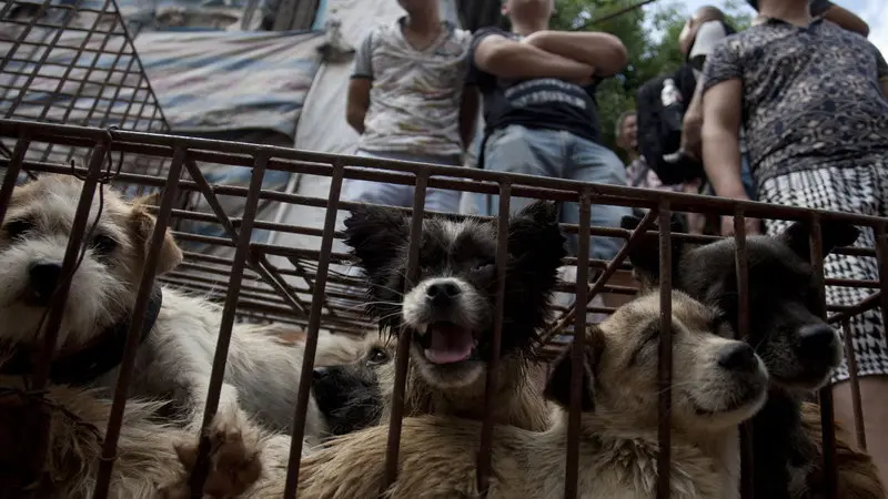 Videos und Fotos der Tierschützer zeichnen ein anderes Bild: Dort ist zu sehen, dass die Tiere zu Dutzenden in rostige Käfige eingesperrt werden, bei lebendigem Leib gekocht und gebraten, vergiftet oder zu Tode geprügelt und dann gehäutet auf dem Markt von Yulin verkauft werden.