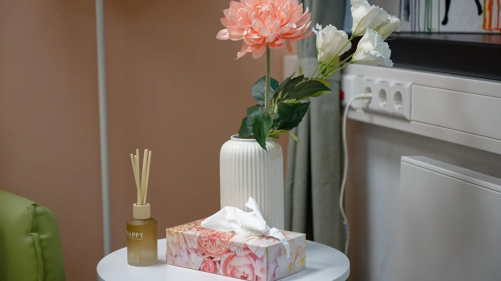 Am Hauptbahnhof in Köln, wo die Bundespolizei im Juni neue Räumlichkeiten bezogen hat, führt eine Treppe hoch zu einem etwa elf Quadratmeter großen Raum mit Deko-Elementen, farbigen Wänden und Polstermöbeln in sanftem Grün. Auf einem Beistelltisch steht eine Box mit Papiertaschentüchern. Wenn die Tür geschlossen wird, sind die Geräusche der Dienststelle kaum noch zu hören.