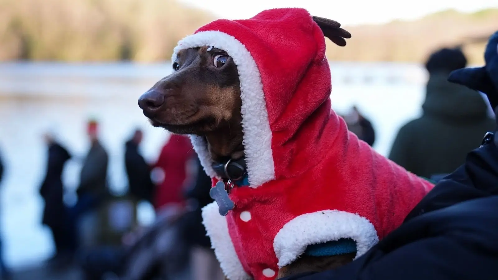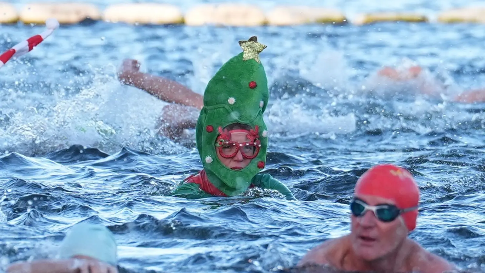 Dutzende steigen zum Weihnachtsschwimmen in den Orankesee