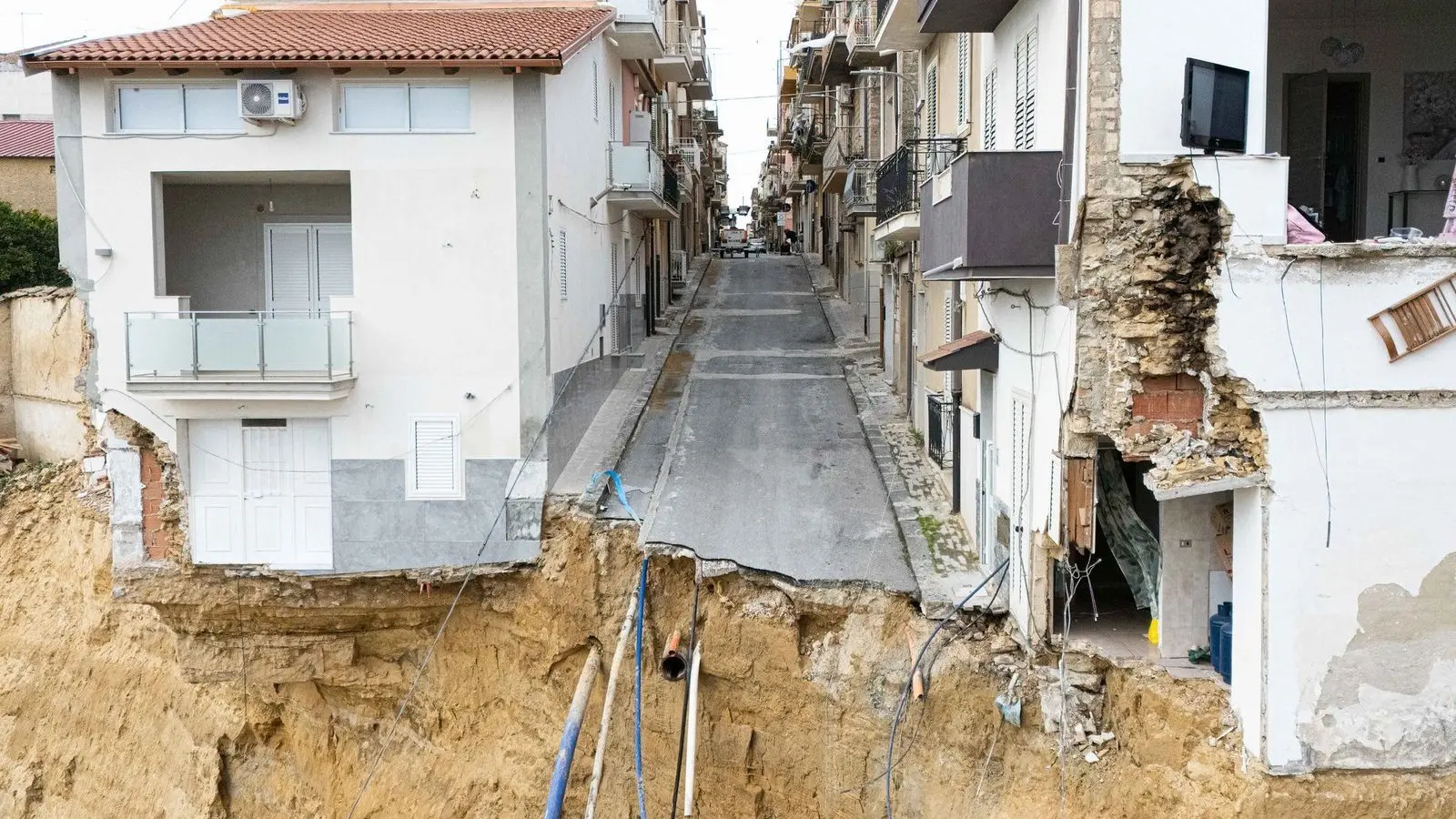 Die Bilder aus Niscemi auf der italienischen Mittelmeerinsel Sizilien nach einem massiven Erdrutsch wirken geradezu apokalyptisch: Wohnhäuser ragen über eine fast senkrecht abfallende Wand, die sich gebildet hat, eine Straße ist abgerissen, Leitungen hängen lose heraus. Die 25.000-Einwohner-Stadt steht buchstäblich am Abgrund. Und der Erdrutsch ist noch immer voll im Gange - langsam frisst sich der Abhang weiter in die Stadt hinein.