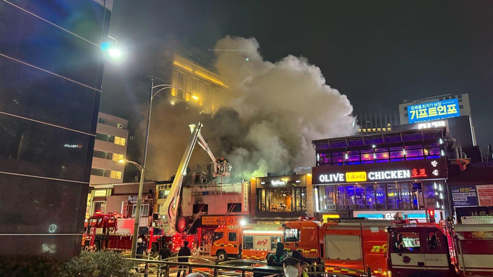 Ein Feuer ist in einem Restaurant im Stadtzentrum von Seoul, direkt hinter dem Rathaus, ausgebrochen.