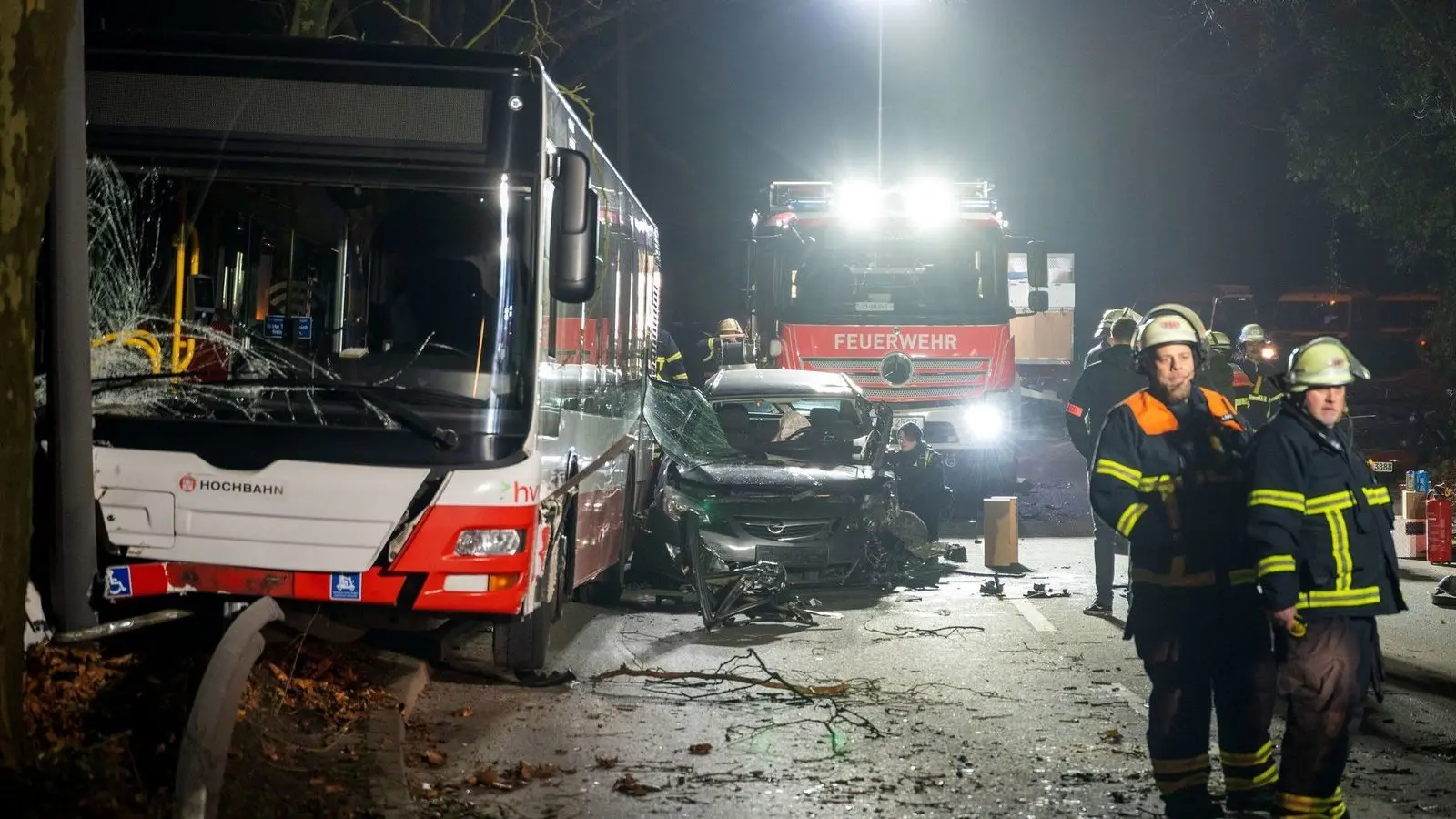 Auf der Flucht geriet der Wagen zwischen einen Linienbus und ein weiteres Fahrzeug und wurde dabei eingeklemmt.