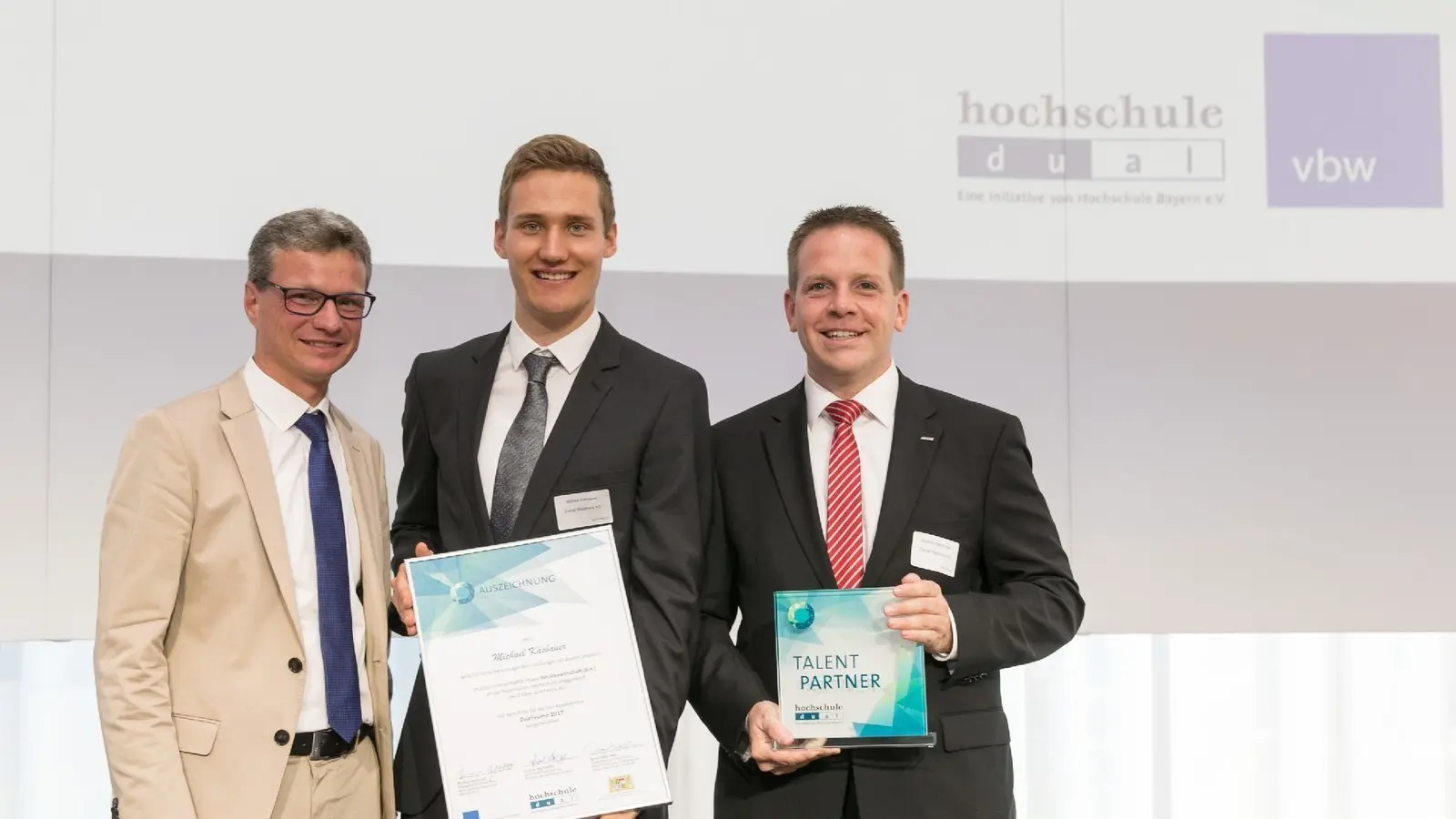 Die Initiative hochschule dual zeichnete gemeinsam mit der vbw (Vereinigung der Bayerischen Wirtschaft e.V.) herausragende Absolventen eines dualen Studiums in Bayern aus. Unter den fünf Preisträgern sind auch zwei Studenten aus unserer Region.