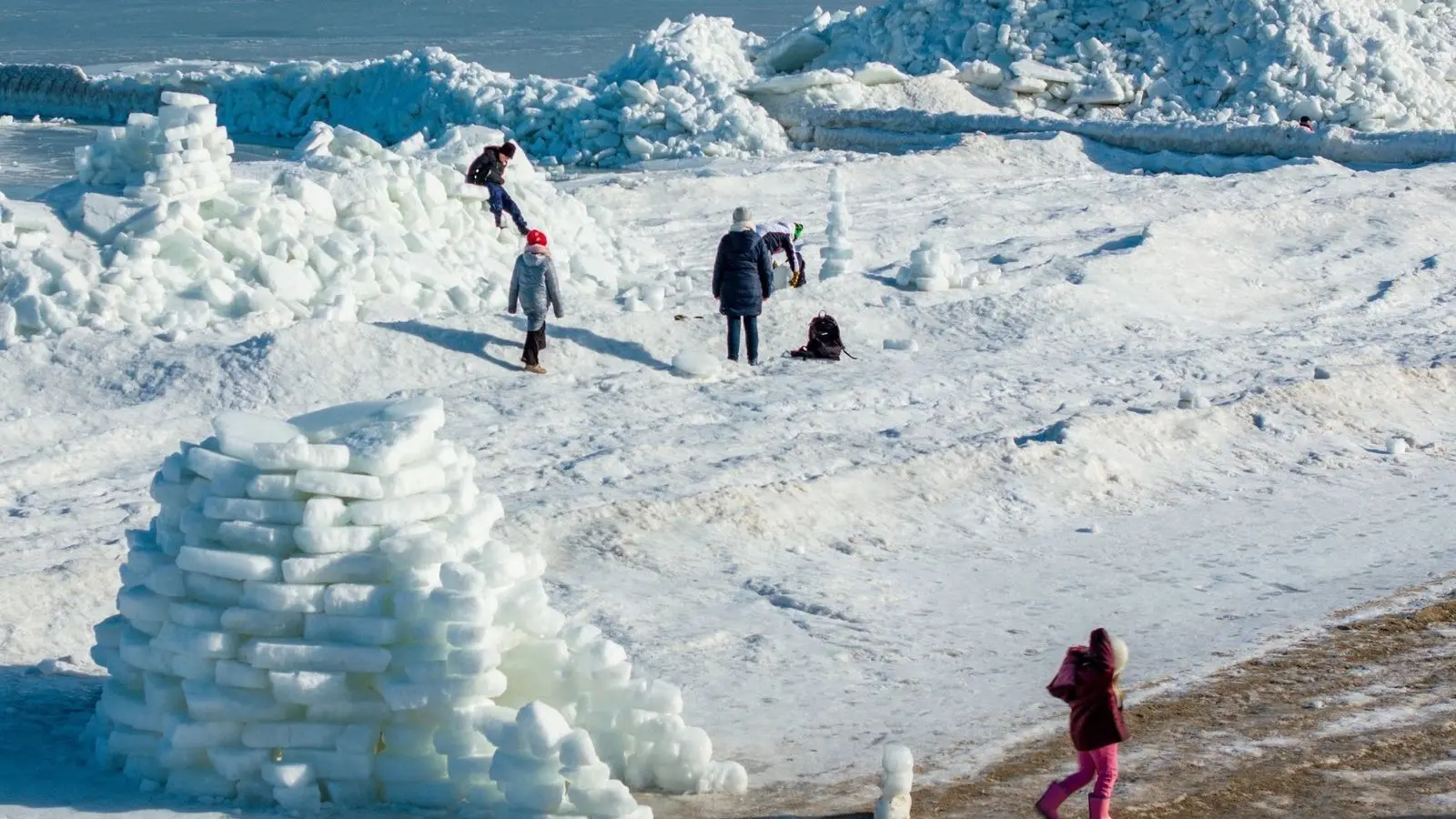 Der Andrang von Urlaubern und Einheimischen sei groß, hieß es beim Fremdenverkehrsamt Zempin. Das Iglu habe ein junges Pärchen gebaut. „Das hat schon ein paar Stunden gedauert, bis es fertig war“, sagte ein Gemeindemitarbeiter. Er schätzte, dass sich die Eisberge derzeit auf vier bis fünf Meter Höhe auftürmen. „Das ist schon ein seltenes Naturschauspiel.“
