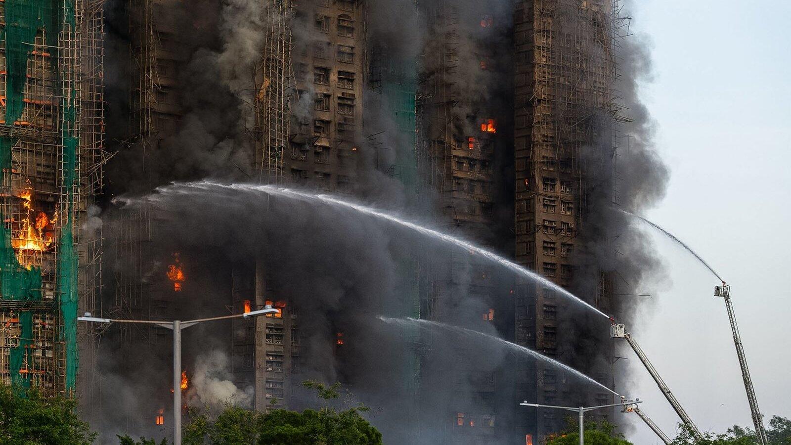 Das Feuer breitete sich an Bambusgerüsten und auch im Innenraum der Hochhäuser aus.