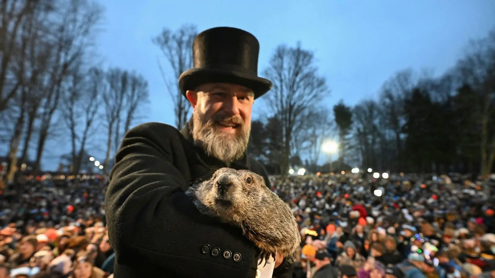 Das weltbekannte Murmeltier gab auf einer Veranstaltung in der Kleinstadt Punxsutawney im US-Bundesstaat Pennsylvania vor einer jubelnden Menschenmenge seine Vorhersage bekannt, die von dem Vorsitzenden des Vereins "Groundhog Club" gedeutet und "übersetzt" wurde.