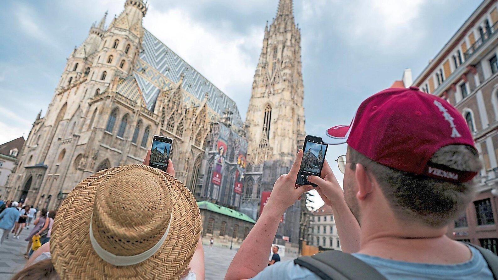 Der Stephansdom im 1. Bezirk ist ein beliebtes Fotomotiv für Touristen. Rund um den Dom präsentiert sich Wien schick und teuer.