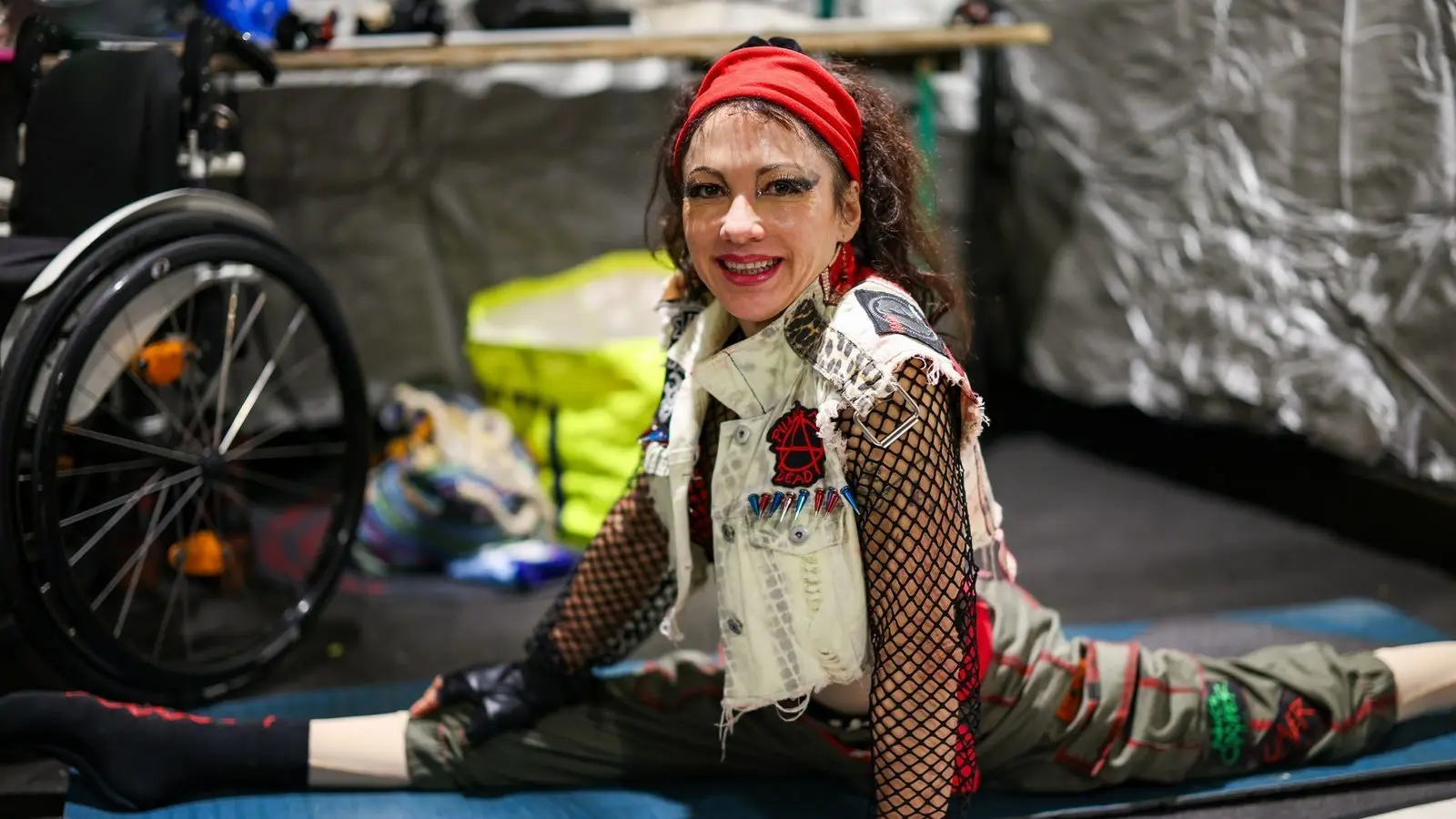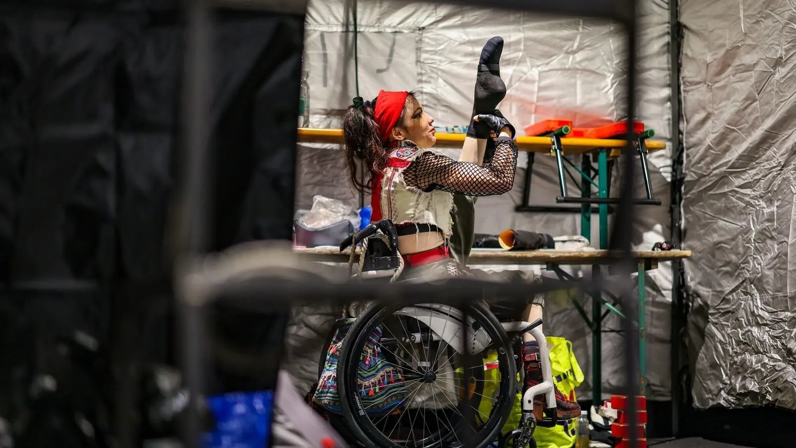 Neben den vielen jungen und unversehrten Körpern, die unter der Kuppel des schwarzen Zirkuszeltes durch die Luft wirbeln, ist Pans Darbietung ein fast schon stiller, aber nicht minder atemraubender Kontrast: Im Rollstuhl fährt die 52-Jährige auf die Bühne, wird von ihrem Mann auf ein Podest gehoben, fixiert ihre Füße an einer Stange - und lässt Sekunden später vergessen, dass sie ihren Unterkörper nicht kontrollieren kann.