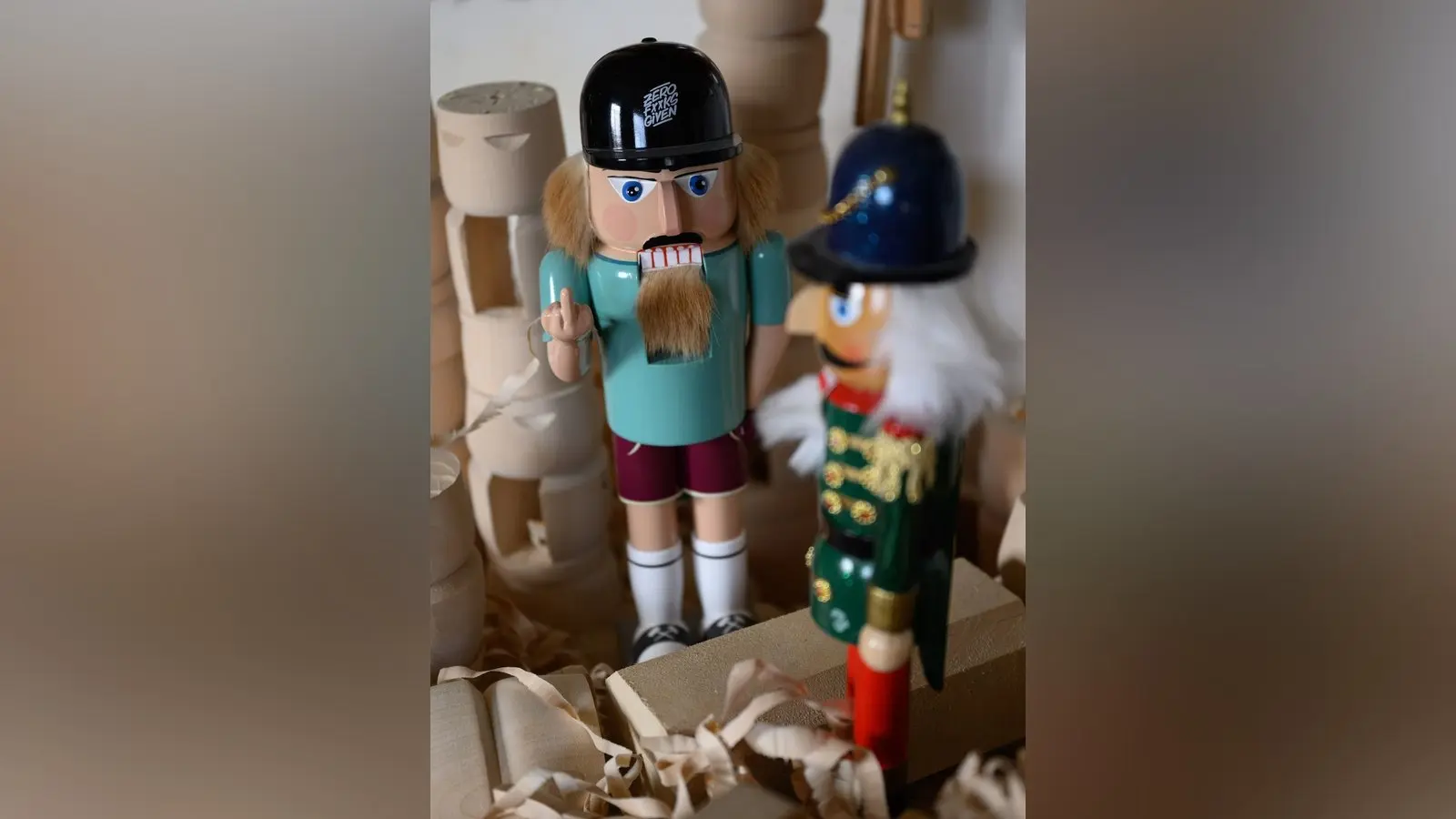 Auf den erzgebirgischen Nussknacker lässt Füchtner nichts kommen, gilt doch sein Ur-Ur-Ur-Großvater als dessen Erfinder. Also hat er an der Drechselbank das gemacht, was er besonders gut kann: einen neuen Nussknacker. Der ist zwar wie seine Kollegen aus Holz und hat Bart und Haar aus Kaninchenfell. Statt rotem Gewand trägt er jedoch kurze Hosen und Basecap. Und die Hand zeigt eine eindeutige Geste. Der hölzerne Rebell sei in Zusammenarbeit mit „Boys from the Wood“ entstanden - einer Gruppe junger Leute, die das Erzgebirge und sein Brauchtum auf moderne Art und Weise feiern, betont der 44-Jährige.