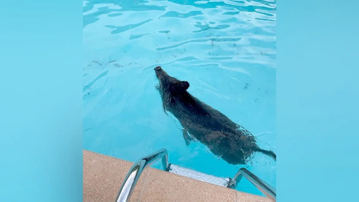 Tierischer Badegast - Wildschwein im Swimmingpool