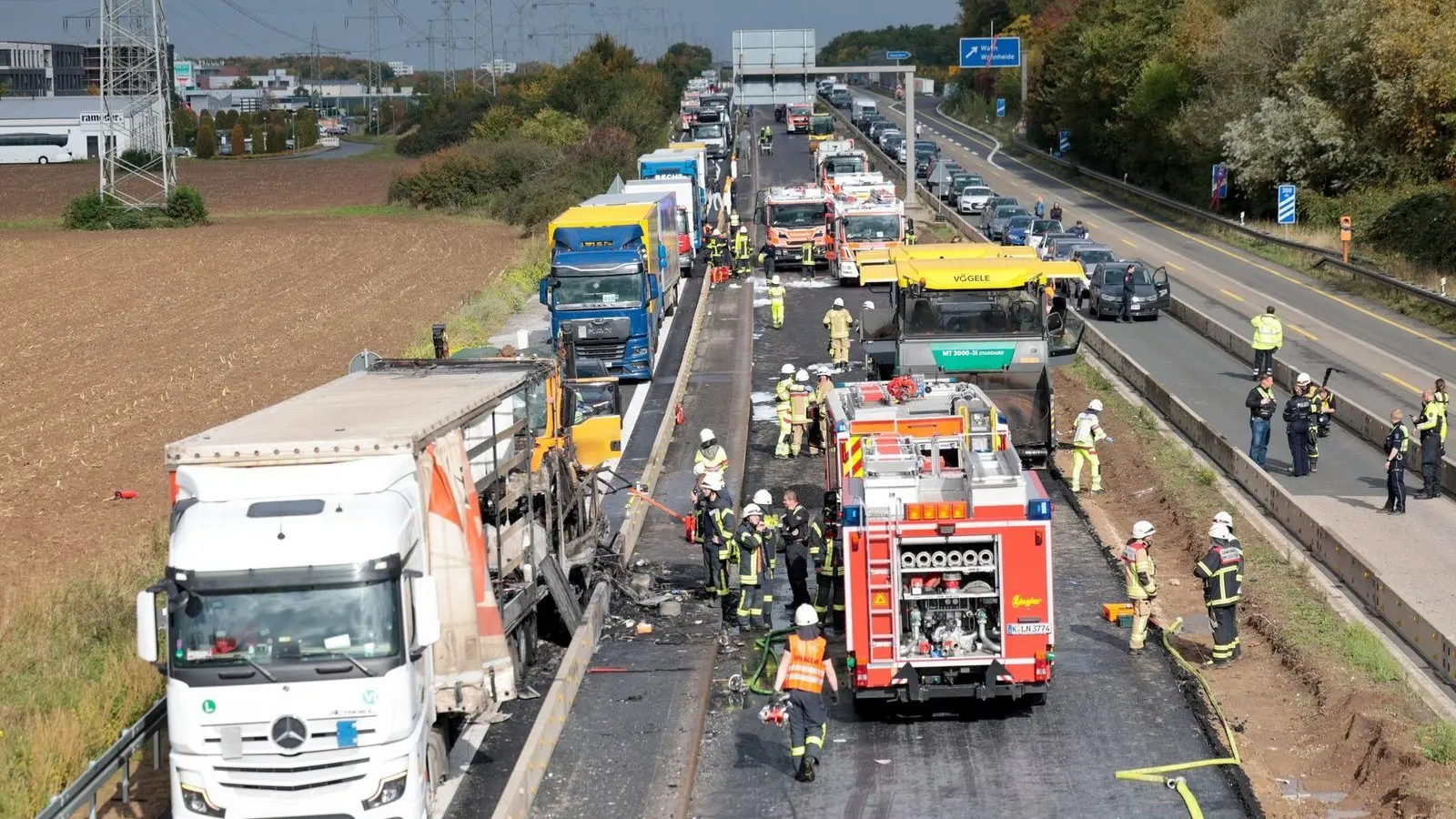 Toter bei Unfall auf A59 - Brennende Fahrzeuge und Sperrung