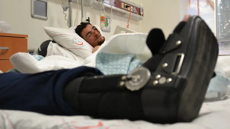 Der mutmaßlich bei einem russischen Luftschlag auf die syrische Stadt Aleppo verletzte und seit zwei Tagen bewußtlose Kasem liegt am 08.02.2016 in einem Krankenhaus in der türkischen Stadt Kilis.