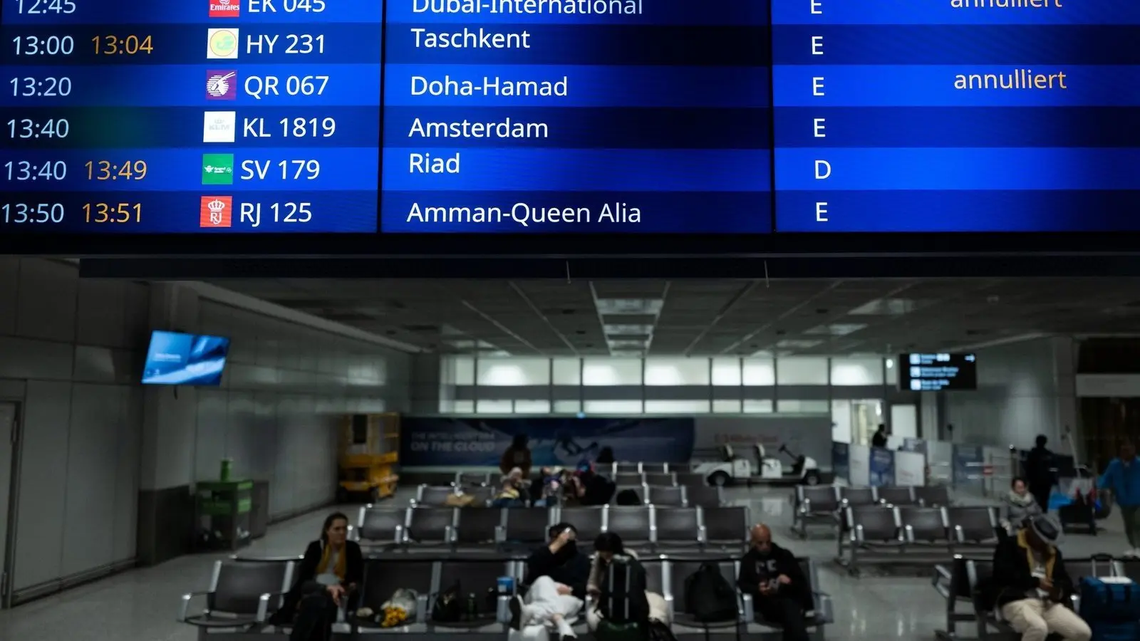 Vielerorts fallen zahlreiche Flüge aus, weil große Drehkreuze in der Golfregion nicht angeflogen werden können – so auch hier in Frankfurt.