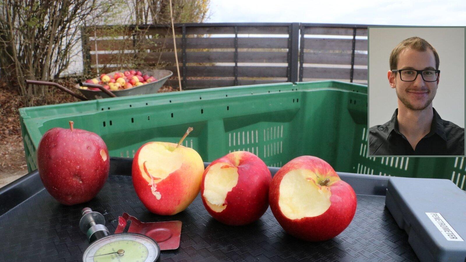 Für seinen Weltrekordversuch testete unser Autor mehrere Apfelsorten. Sein Ziel: Der lauteste Apfelbiss der Welt.