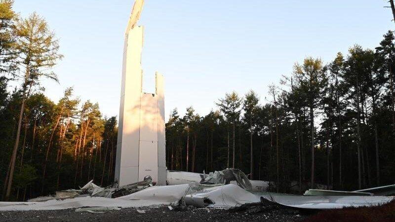 Recht weit unten brach das Windrad ab - nur etwa 20 Meter über dem Boden. Der Turm sackte in sich zusammen und Teile der Flügel krachten in den umliegenden Wald. Beim Einsturz war das Windrad laut Betreiber am Netz. Sehr windig war es der Feuerwehr zufolge nicht.