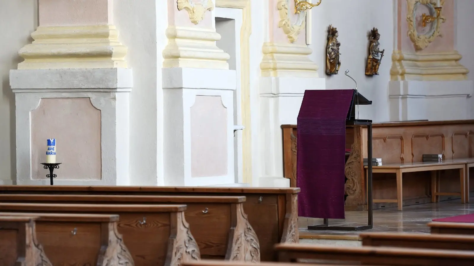 Das Rednerpult in der Pfarrkirche St. Martin, aufgenommen am 09.03.2016 in Zorneding (Bayern). Am 13.03.2016 findet der erste Sonntagsgottesdienst nach dem Weggang des vom Mord bedrohten dunkelhäutigen Pfarrers statt.