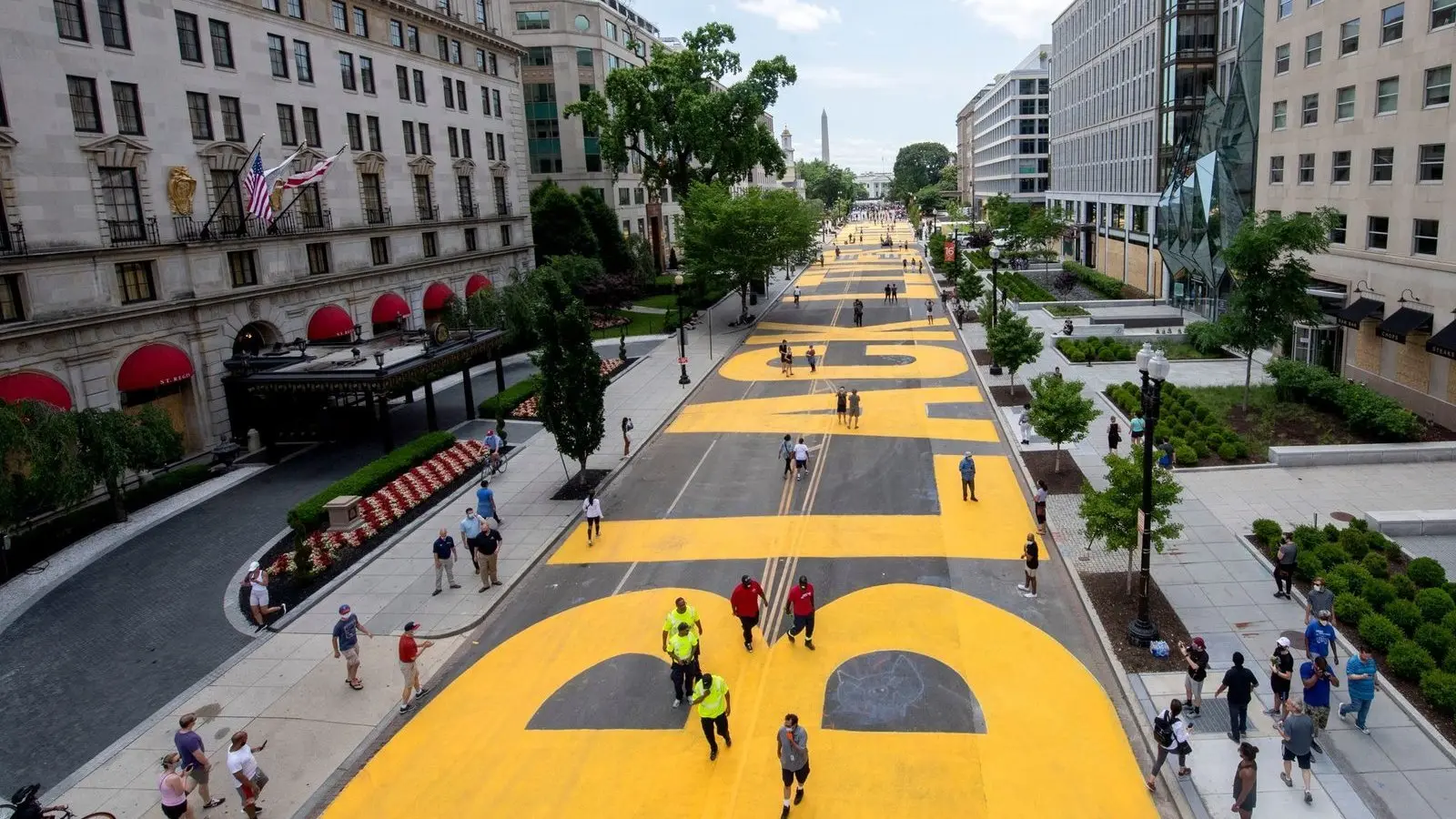 Die Demokratische Bürgermeisterin von Washington, Muriel Bowser, hatte sich dem Druck von Republikanern gebeugt. Ein Kongressabgeordneter hatte zuletzt einen Gesetzesentwurf eingebracht, in dem gedroht wurde, der US-Hauptstadt Gelder zu streichen, sollten die Buchstaben nicht entfernt und der Platz umbenannt werden.