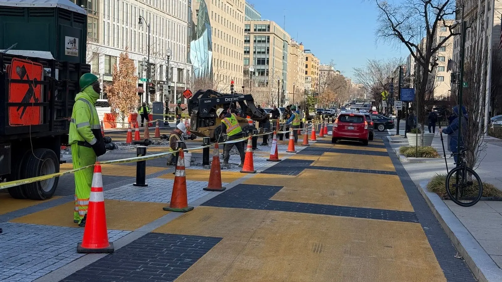 Bauarbeiter entfernen Schriftzug Black Lives Matter in DC