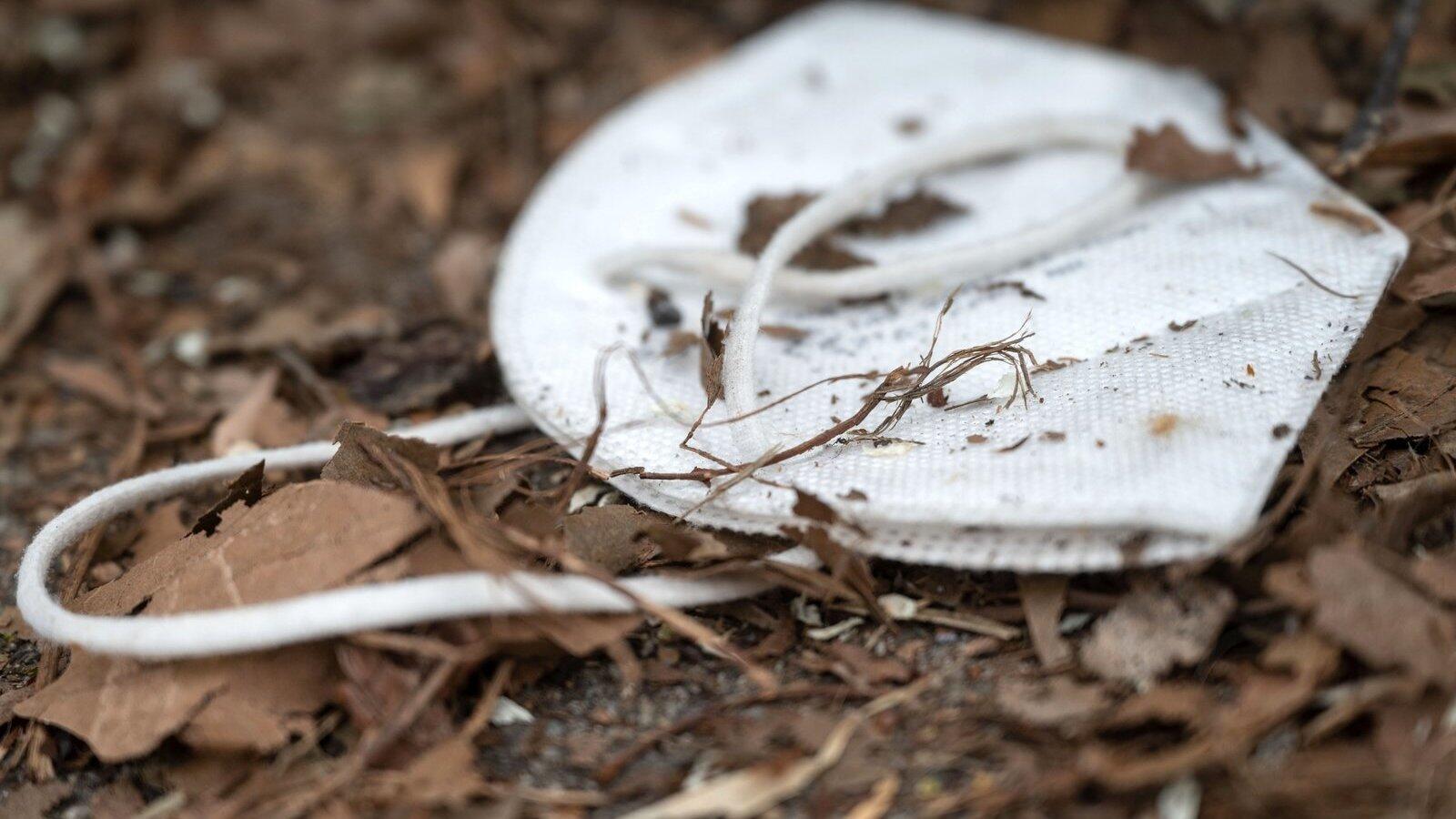 Eine FFP2-Maske liegt zwischen Pflanzenresten. Während der Corona-Pandemie war es teilweise Pflicht, eine solche Maske zu tragen.
