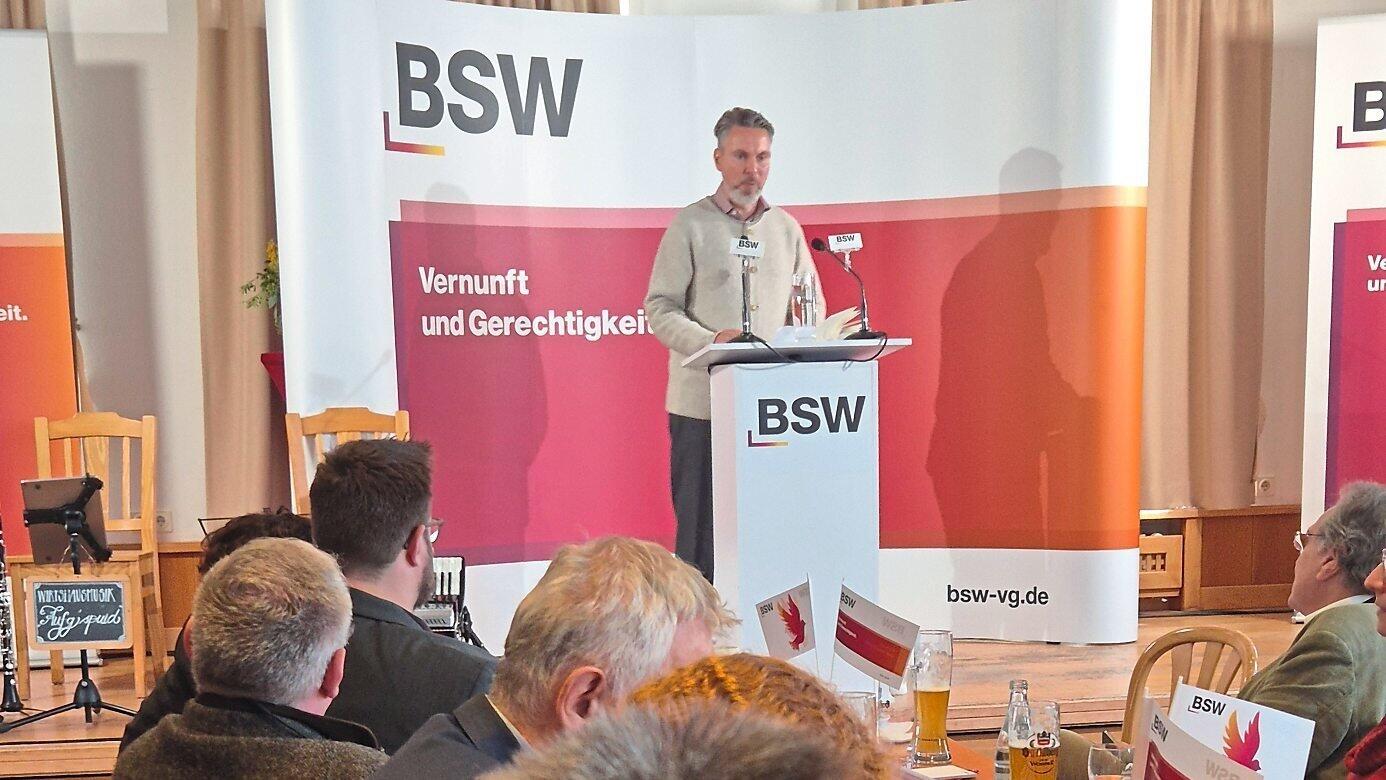 Dass beide Chefs des BSW („Bündnis Sahra Wagenknecht“) nach Tiefenbach im Landkreis Passau gekommen sind, kann Landesvorsitzende Klaus Ernst (heute nur Gast) gar nicht hoch genug loben.
