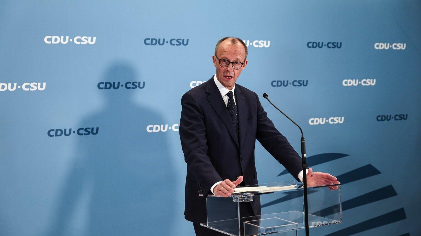 Friedrich Merz, CDU-Bundesvorsitzender und Fraktionsvorsitzender der CDU/CSU-Fraktion im Bundestag, gibt ein Statement zu dem tödlichen Angriff in einem Park in Aschaffenburg.