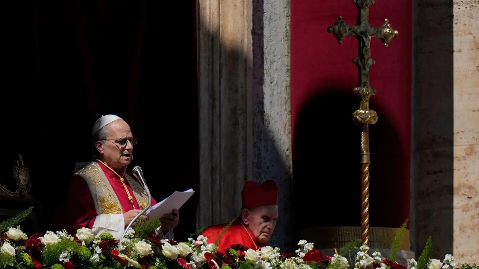 Von der zentralen Loggia des Petersdoms spendet Leo XIV. den Segen Urbi et Orbi.